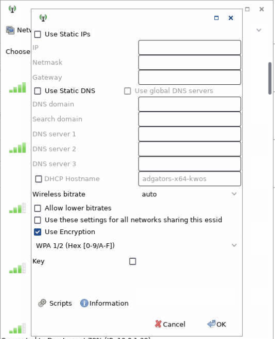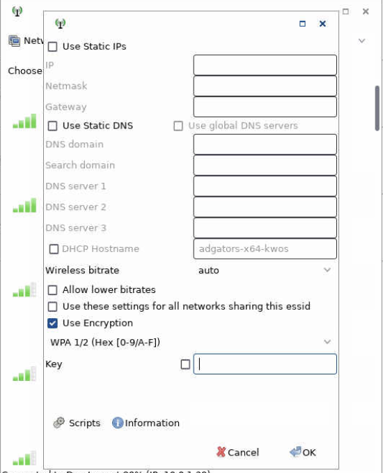 9. The connection status should report at the bottom of the Network Manager window. Once you're connected, please let us know and we'll attempt to remote in.